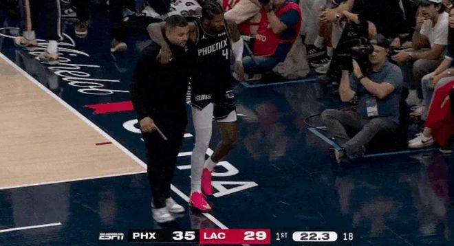 北京时间11月9日,在太阳客场对阵快船的比赛,太阳新援杰伦-格林在复出第二场再次受伤。格林首节疑似出现右大腿腿筋拉伤情况,随后被队医搀扶返回更衣室。