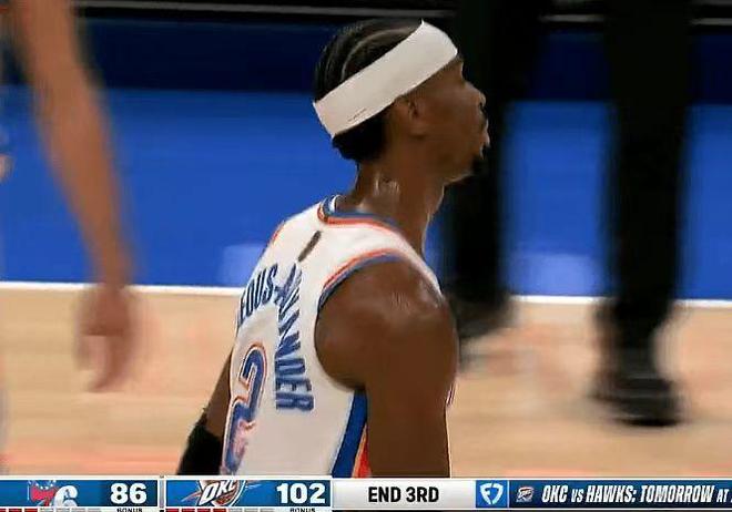 中场休息回来,雷霆连续三节得分30+,且首次单节得分35+,并且限制76人首次单节不足25分。雷霆在75-73仅领先2分情况下,逐步打出一波11-0攻势扩大13分优势,雷霆之后继续压制76人。前三节比赛,雷霆63中39超过6成准星,其中三分19中8,亚历山大13中10得到27分与霍姆格伦13中10得到23分,引领雷霆4人得分上双;76人60中30,其中三分31中15,马克西23分引领76人5人得分上双。雷霆但末节38-24净胜14分,三节结束雷霆扩大102-86领先76人16分优势。