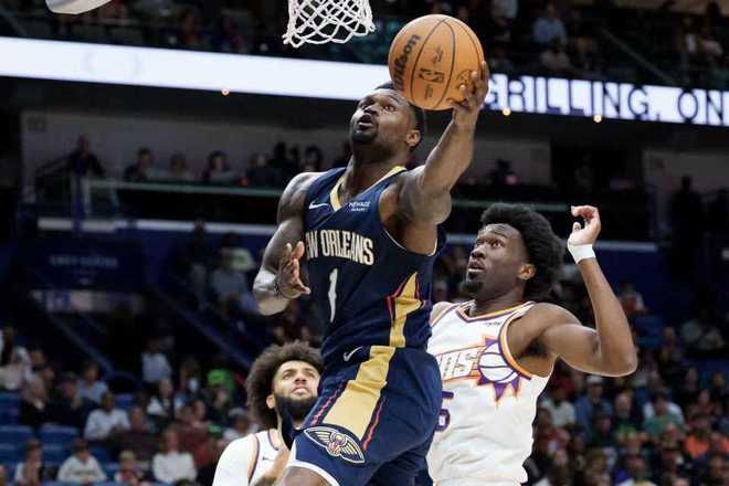 太阳过去两场连赢湖人与鹈鹕收获2连胜,鹈鹕过去两场连输骑士与太阳遭遇2连败,本赛季前两次交锋太阳均取胜,前一天太阳客场115-108战胜鹈鹕。本场鹈鹕缺少穆雷与琼斯,太阳缺少杰伦-格林、阿伦、邓恩。首节双方早早开启对攻模式,前3分钟太阳6-7落后,太阳一波7-2攻势反超4分。墨菲三分命中,太阳连得5分扩大优势,并在之后继续维持23-18领先优势。墨菲与锡安联手持续得分反超比分,首节结束太阳32-33落后鹈鹕。首节太阳三分14中5,狄龙7中4得到10分与布克6中2仅得到5分,鹈鹕三分9中4,墨菲3记三分11分与锡安8分。