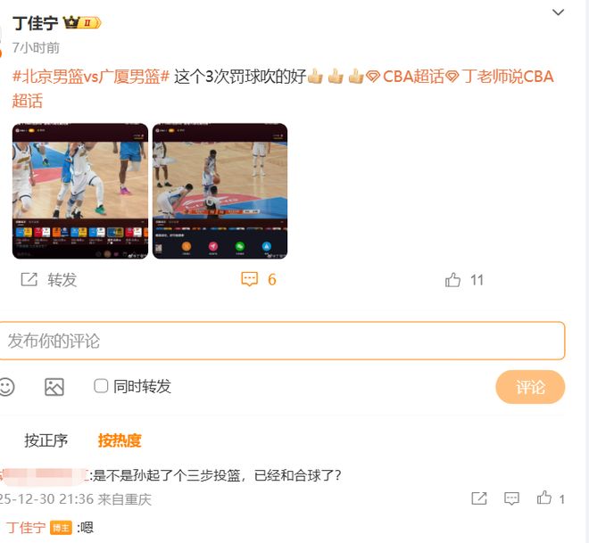 先来说说孙铭徽的这一记造三分犯规,裁判专家丁佳宁认为,这个判罚没有问题,一来张才仁确实是犯规,二来孙铭徽在张才仁撞到他之前就完成了合球,这是一个连贯的投篮动作,虽然在中场就出手投三分显得有些夸张,但孙铭徽也是预判到位了才敢这么做,合理利用规则。