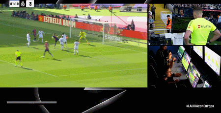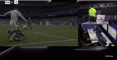 而当VAR介入时,比如伊格莱西亚斯-维拉纽瓦在伯纳乌的做法,他会通过慢镜头回放甚至定格画面进行分析。但在正常速度下,我们可以清楚看到两名球员争抢球权,皮球即将出底线,而埃里克为了保护自己的空间倒地。由于惯性,他的手臂在自然位置上试图重新站起时碰到了球,确实如此。主裁判索托-格拉多在正常速度下观看后认为没有任何问题。但在定格画面中,这却被判定为点球。就像巴尔德在对阵莱万特的比赛中的情况一样。